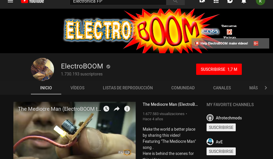 Que decir de ElectroBOOM, si bien no es un canal como los anteriores lo he agregado porque a pesar de lo viral de los títulos y las imágenes, se aprende un poco más a como no trabajar con la electricidad, miren el video de presentación y me darán la razón y de paso se llevan algunas risas.
