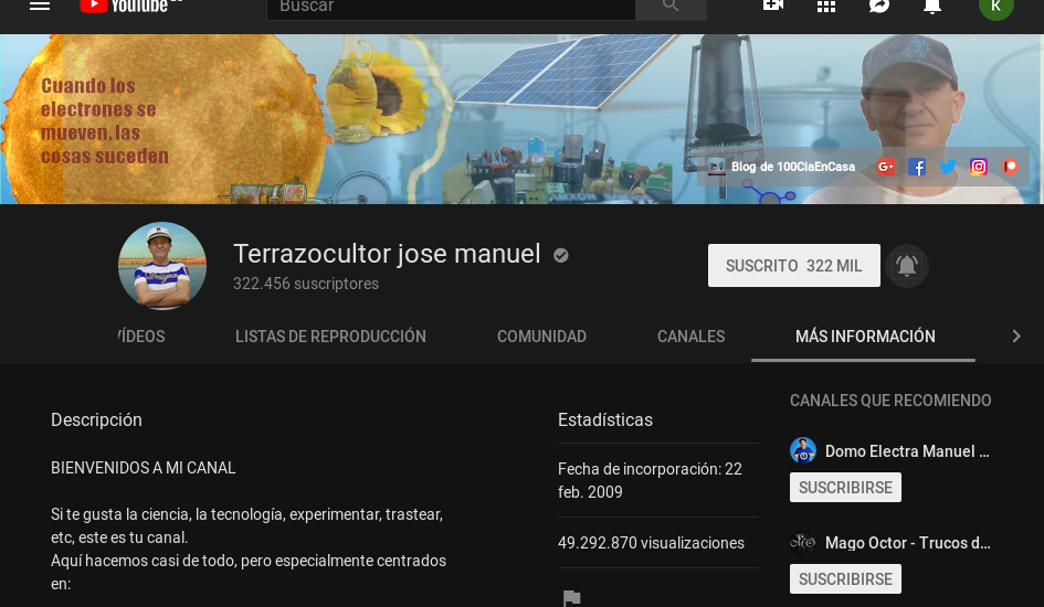 Jose Manuel tiene más que videos explicativos y un curso de electrónica básica, también tiene muchos video tutoriales, enseña reparación de electrodomésticos y muchas cosas extras. Todo es muy casero en sus videos, si estas empezando vas a ver como con poco se puede hacer muchas cosas. Tiene su propio estilo de enseñanza y su impronta se ve en sus casi 525 videos. No por nada supera los 300 mil subscriptores.